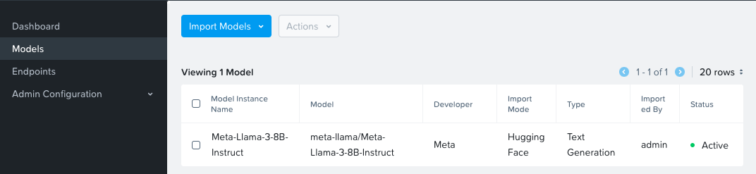 After a successful model import, you will see it in Active status in the NAI UI under Models menu