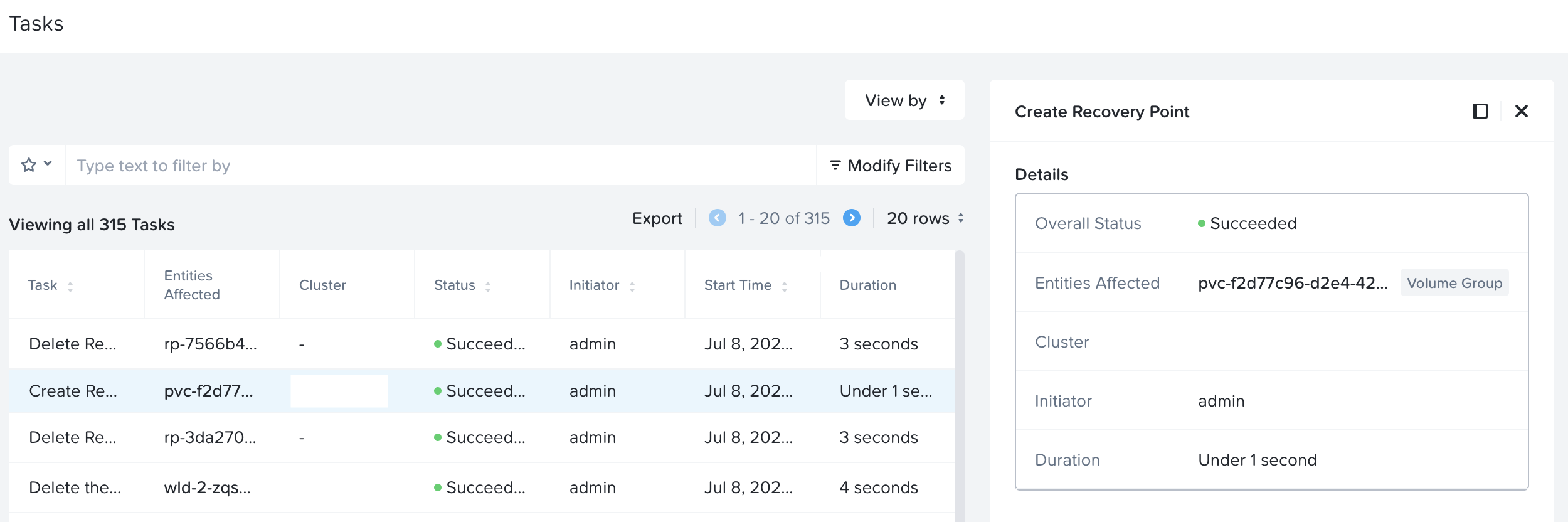 ApplicationSnapshotRestorecustom resourceWait until the status of ApplicationSnapshotRestore custom resource is trueName: cross-ns-asr Namespace: restore API Version: dataservices.nutanix.com/v1alpha1 Kind: ApplicationSnapshotRestore Metadata: Creation Timestamp: 2025-07-08T05:40:31Z Finalizers: dataservices.nutanix.com/application-restore Generation: 1 Resource Version: 7484636 Spec: Application Snapshot Name: app1-snap Application Snapshot Namespace: default Status: Completed: true Conditions: Last Transition Time: 2025-07-08T05:40:31Z Message: Observed Generation: 1 Reason: RequestCompleted Status: False Type: Progressing Last Transition Time: 2025-07-08T05:40:31Z Message: All prechecks passed and finalizers on dependent resources set Observed Generation: 1 Reason: PrechecksPassed Status: True Type: PrechecksPassed Last Transition Time: 2025-07-08T05:40:31Z Message: Restore requests for all eligible volumes submitted Observed Generation: 1 Reason: VolumeRestoreRequestsSubmitted Status: True Type: VolumeRestoreRequestsSubmitted Last Transition Time: 2025-07-08T05:41:32Z Message: All eligible application configs restored Observed Generation: 1 Reason: ApplicationConfigRestored Status: True Type: ApplicationConfigRestored Last Transition Time: 2025-07-08T05:41:47Z Message: All eligible volumes restored Observed Generation: 1 Reason: VolumesRestored Status: True Type: VolumesRestored Last Transition Time: 2025-07-08T05:41:47Z Message: Application restore successfully finalised Observed Generation: 1 Reason: ApplicationRestoreFinalised Status: True Type: ApplicationRestoreFinalised Finish Time: 2025-07-08 05:41:47 Start Time: 2025-07-08 05:40:31 -