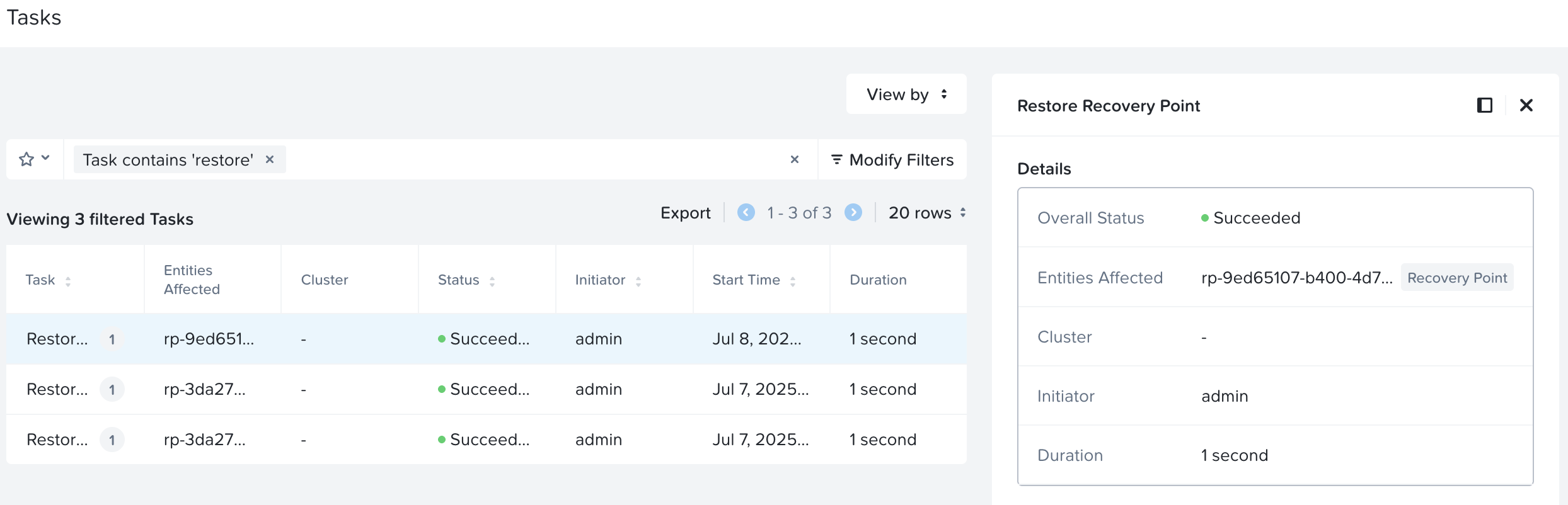 Restore Recovery Pointoperation in Prism Central