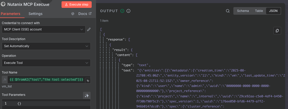 8. Add another MCP Client (via npm) tool node to workflow and name it something meaningful like Nutanix MCP Execute