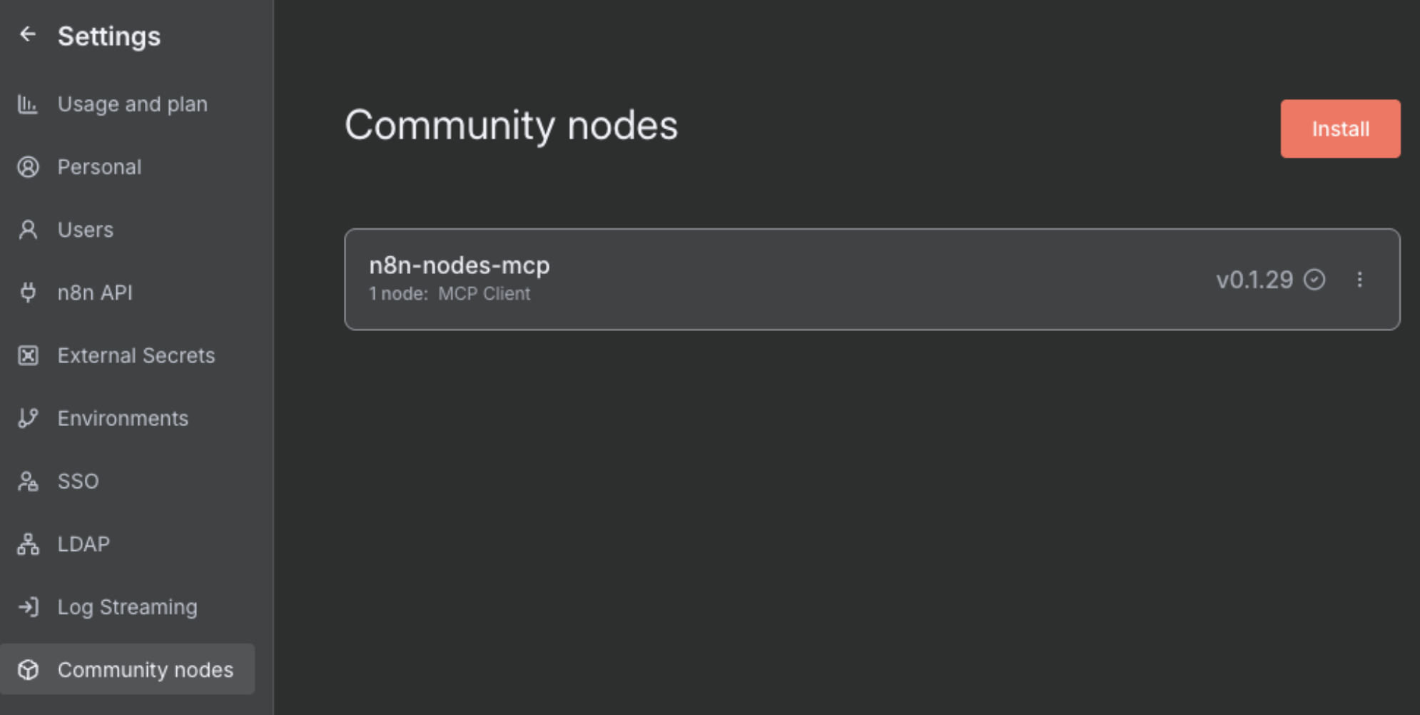 1. Add Community Node n8n-node-mcp to n8n instance under Settings